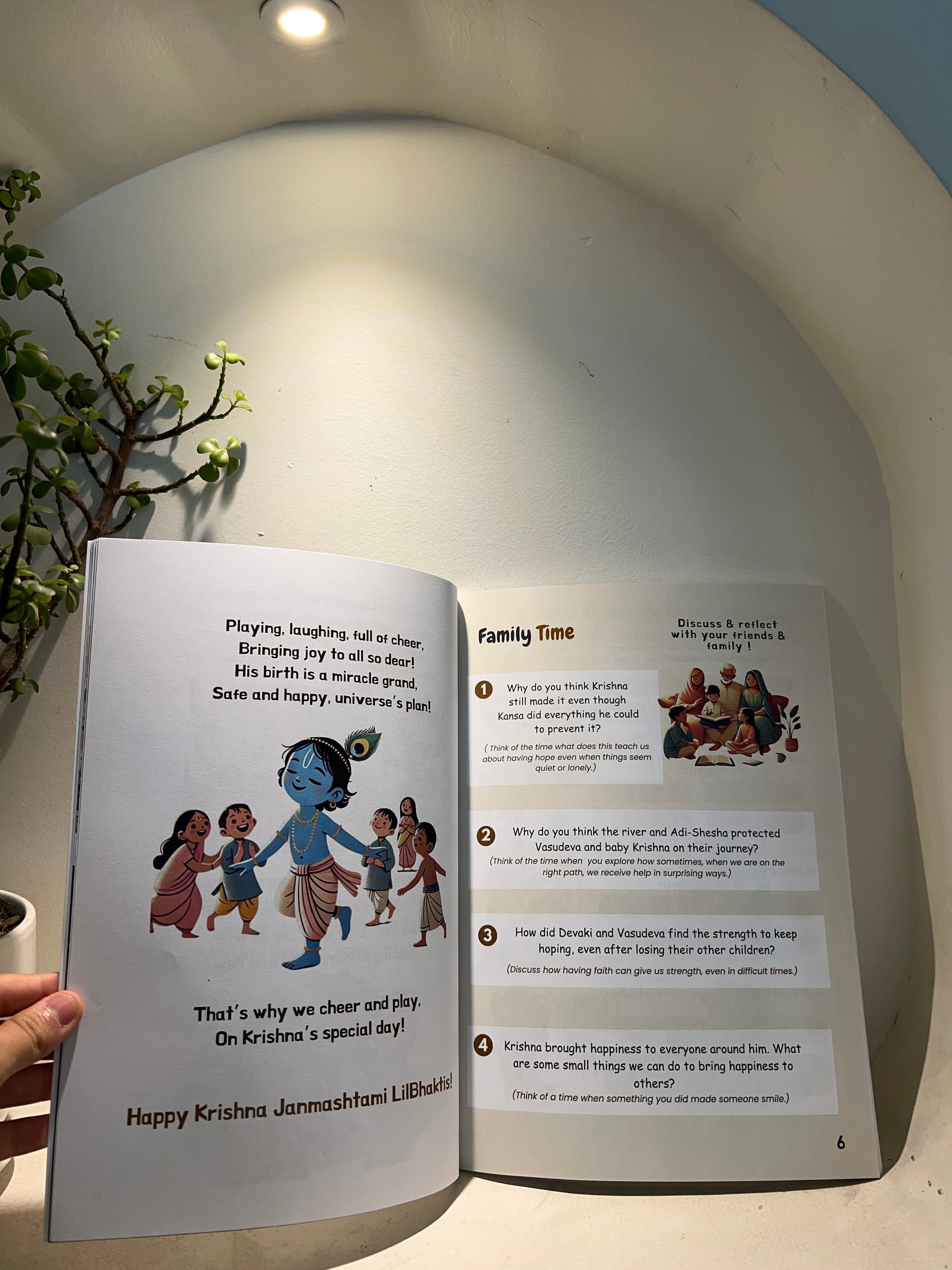 LilBhaktis has the perfect book for you! Brimming with enchanting stories about his miraculous birth to his playful escapades in Vrindavan, each page brings Krishna's divine magic to life.